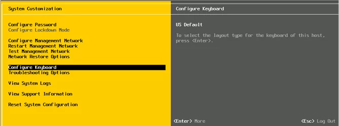 The DCUI graphical console will open for the initial configuration of the hypervisor.