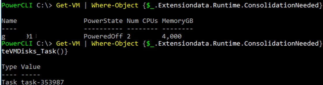 Get-VM | Where-Object {$_.Extensiondata.Runtime.ConsolidationNeeded}