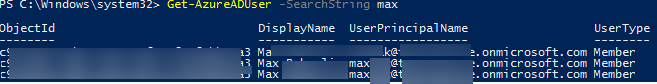 Then you can use AzureAD module cmdlets to get different information from your domain. Let’s find users whose contains Max: